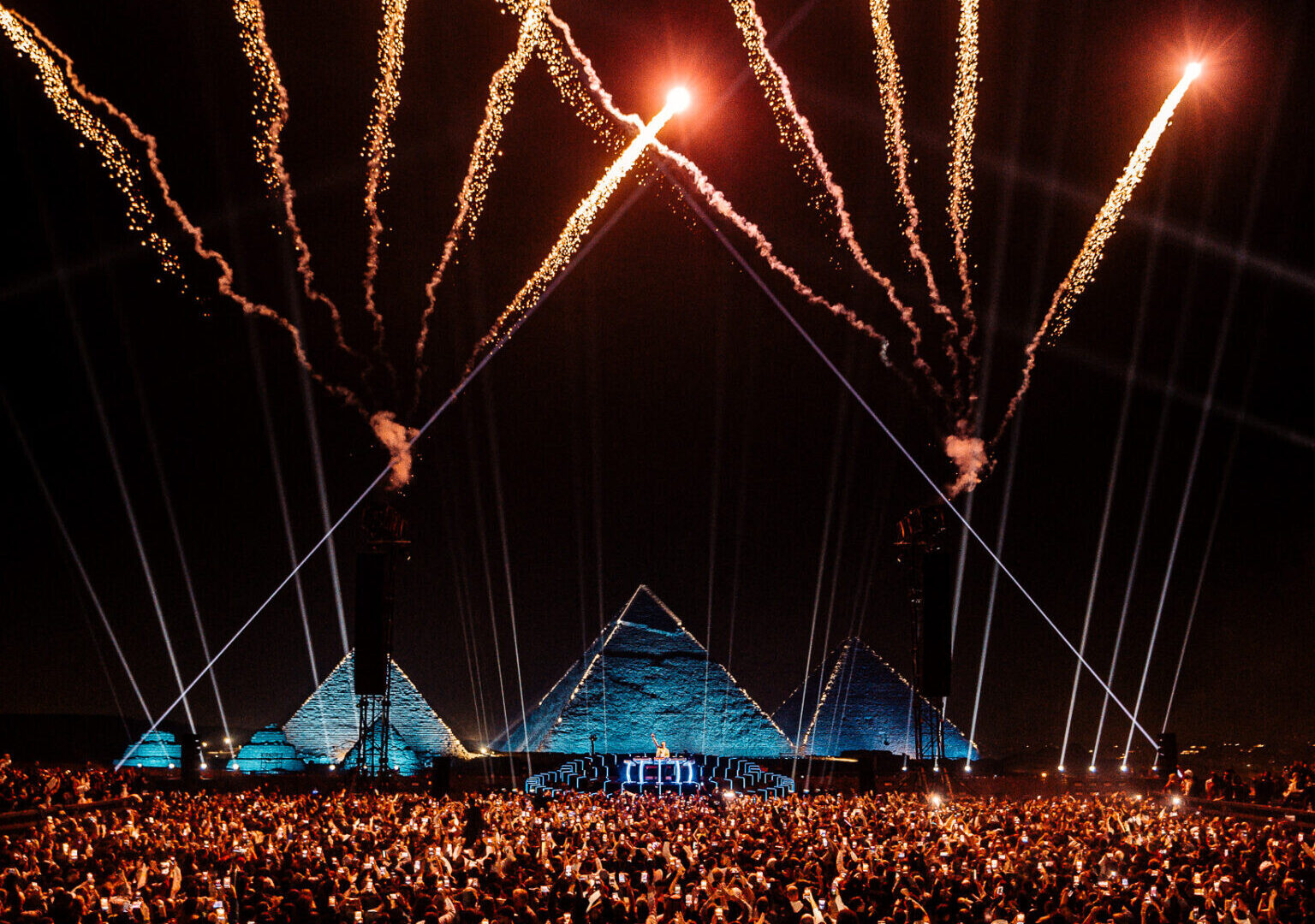 Between the beautiful pyramids and the desert sands, we proved that with enough precision and a world-class team, the possibilities are limitless. Bo Basic was responsible for the visionary concept and Ian Tomlinson from High Scream for the brilliant set and lighting design.